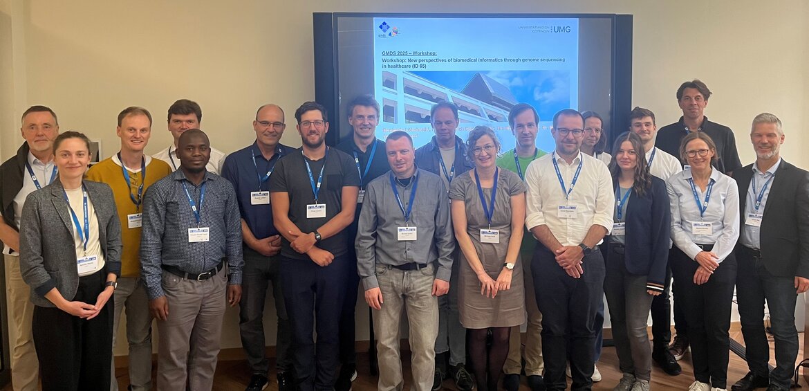 As part of the GMDS Annual Meeting 2025 in Jena, a high-profile workshop entitled “New perspectives of biomedical informatics through genome sequencing in healthcare” took place on September 10, 2025. The event was organized by the GMDS Working Group on Biomedical Informatics, led by Prof. Dr. Ulrich Sax, Benjamin Löhnhardt (both from the Department of Medical Informatics, University Medical Center Göttingen), and Prof. Dr. Tim Beißbarth (Institute for Medical Bioinformatics, University Medical Center Göttingen). Prof. Dr. Michael Altenbuchinger represented Tim Beißbarth.