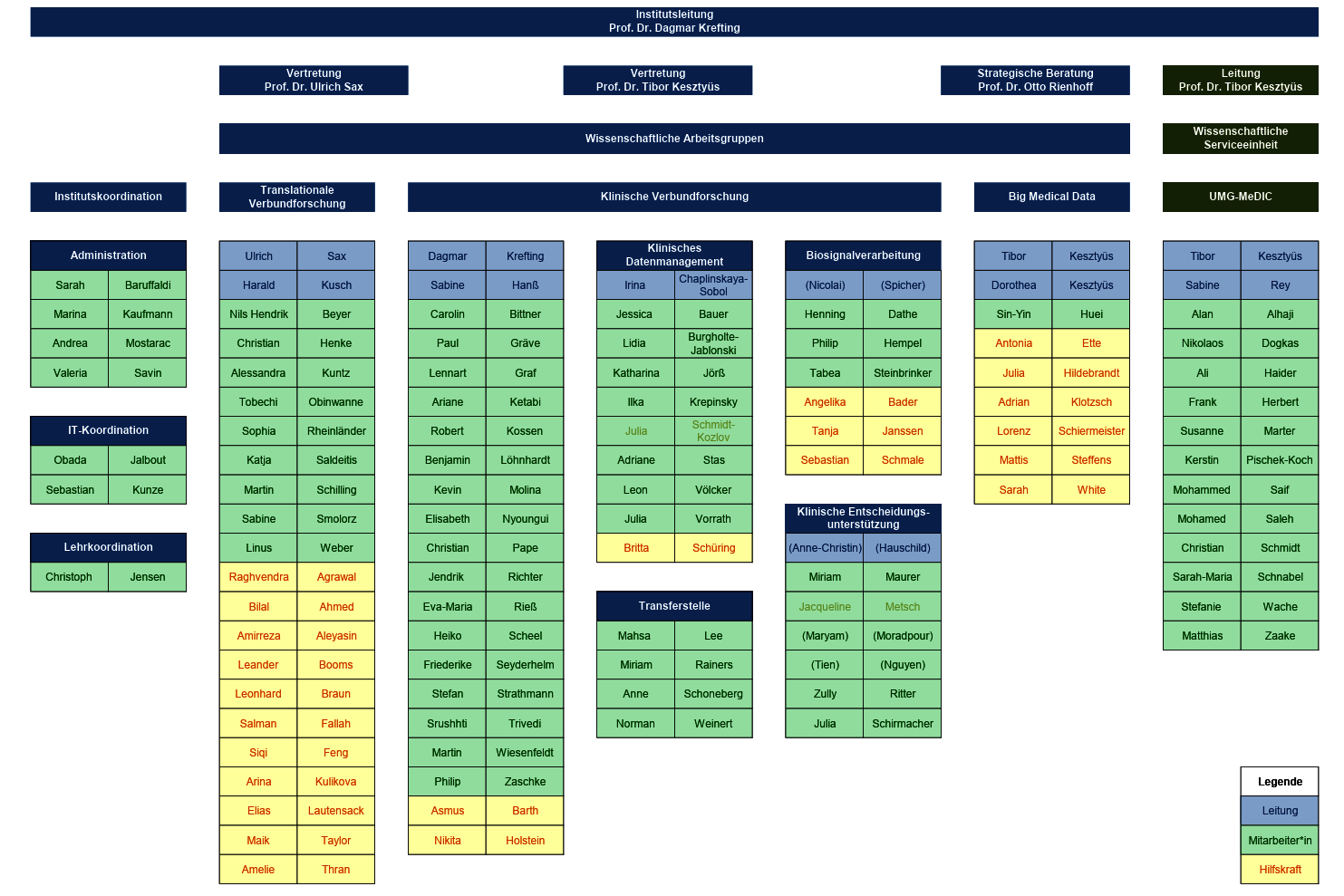 Neben den wissenschaftlichen Bereichen ist das Medizinische Datenintegrationszentrum der Universitätsmedizin Göttingen (UMG-MeDIC) als eigenständiger Bereich am Institut für Medizinische Informatik eingerichtet.