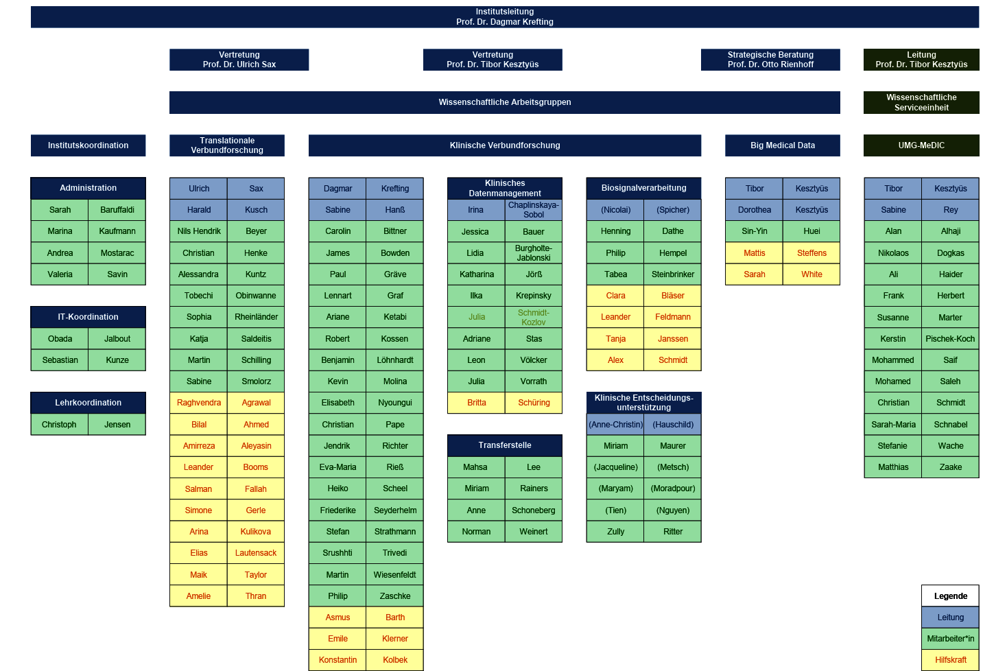 Neben den wissenschaftlichen Bereichen ist das Medizinische Datenintegrationszentrum der Universitätsmedizin Göttingen (UMG-MeDIC) als eigenständiger Bereich am Institut für Medizinische Informatik eingerichtet.